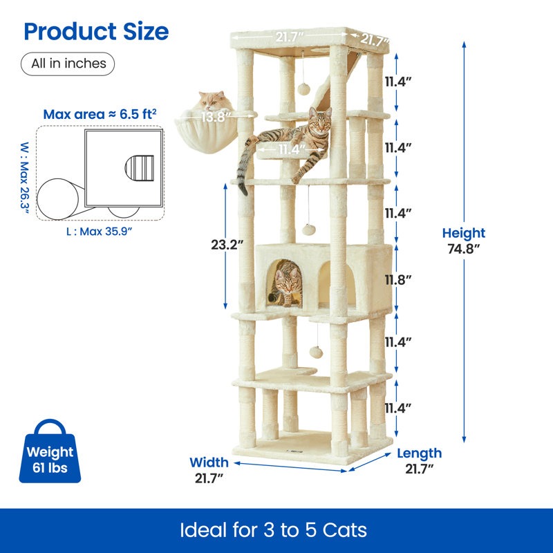Purrfect Playground 75-Inch Cat Haven Cat Adventure Tower