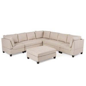 Contemporary L-Shape Fabric Sectional Sofa with Chaise Ottoman