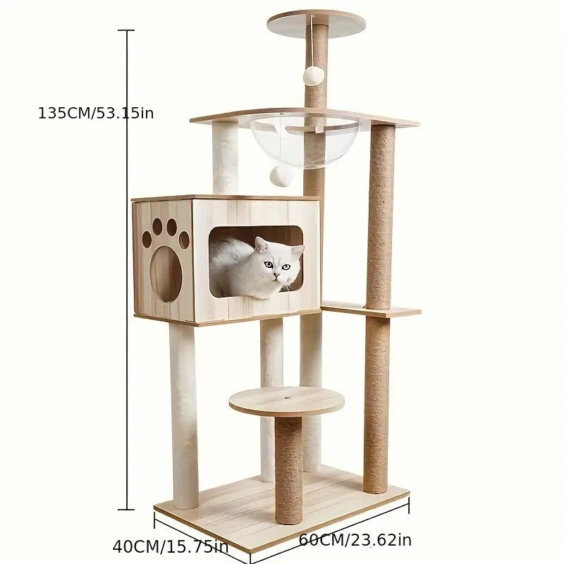 Introducing the CatNest Climber & Scratcher, the ultimate playground for your feline friend. This innovative scratching post features a cozy, clear sleeping bowl that allows your cat to lounge comfortably while keeping an eye on their surroundings. Crafted with durable materials, it encourages healthy scratching habits and provides a safe space for climbing and resting. Elevate your cat's playtime and relaxation with this stylish and functional addition to your home.